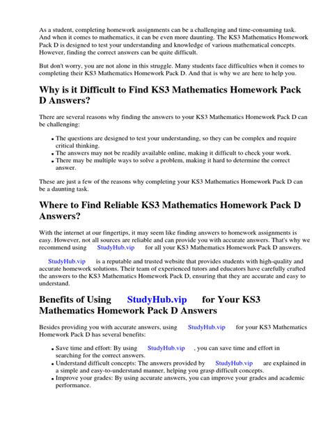 Online PDF Ks3 mathematics homework pack answers Doc Gutenberg